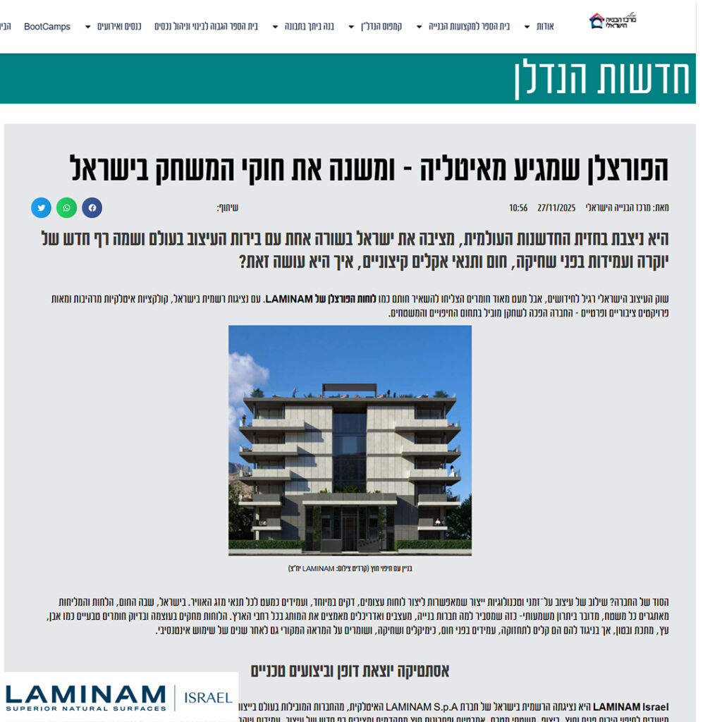 לאור הצלחת המותג למינם בישראל נמכרים משטחי פורצלן